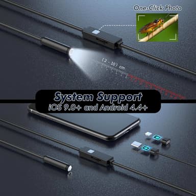 Tämän tuotteen avulla voit helposti tarkastaa vaikeasti saavutettavat paikat suoraan puhelimesi kautta – ilman WiFi-yhteyttä. Kompakti, vedenkestävä ja korkearesoluutioinen endoskooppikamera sekä Androidille että iOS:lle.