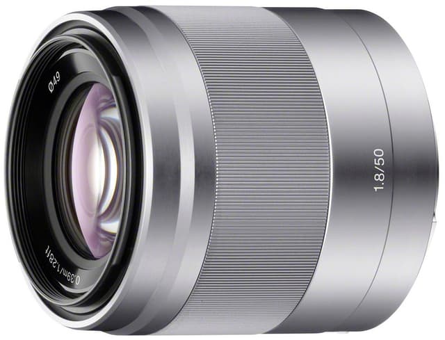 • Sony SEL50F18 50 mm objektiivi (hopea)