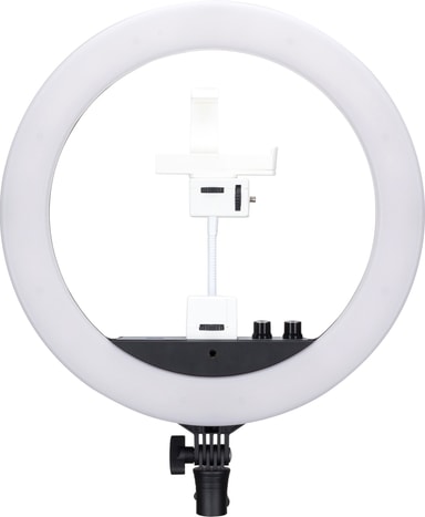 Nanlite Halo 14 LED -valorengas luo täydellisen taustavalaistuksen kamerallesi 35,5 cm halkaisijan, himmennettävyyden ja säädettävän värilämpötilan avulla. Voit myös liittää älypuhelimen valorenkaan mukana tulevaan telineeseen. 5/8-tuumaisella ruuviuralla voit kiinnittää sen kaikenlaisiin kolmijalkoihin. Laite saa virtansa pakkaukseen sisältyvältä virta-adapterilta.