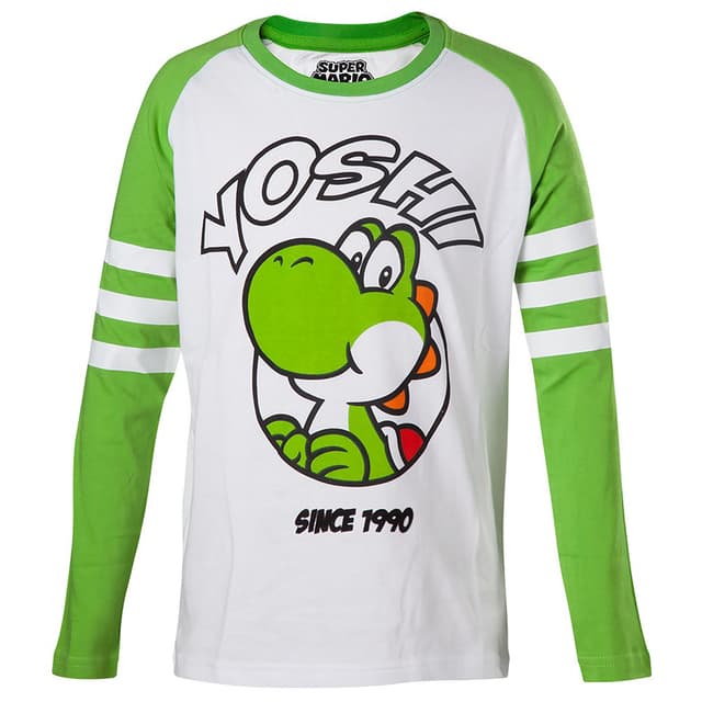 Lasten pitkähihainen paita - Yoshi (valk/vih) (98/104)