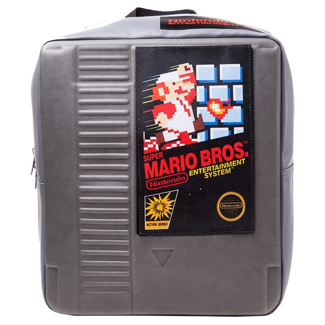 Tässä Nintendon virallisesti lisensoimassa repussa on säädettävät, pehmustetut olkahihnat ja ripustuslenkki. Alkuperäisen SNES-pelikasetin tyyliin muotoillussa repussa on yksityiskohtaiset 3D-kuviot. 70 % polyuretaania, 30 % polyesteria.