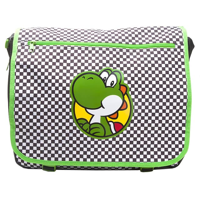 Ruudulliseen Nintendo Yoshi -olkalaukkuun mahtuu kannettava tietokone ja päivittäiset tavarat. Laukussa on useita vetoketjulla suljettavia taskuja ja säädettävä olkahihna.Tutustu ominaisuuksiin