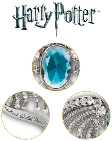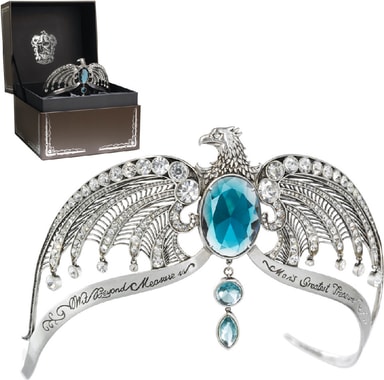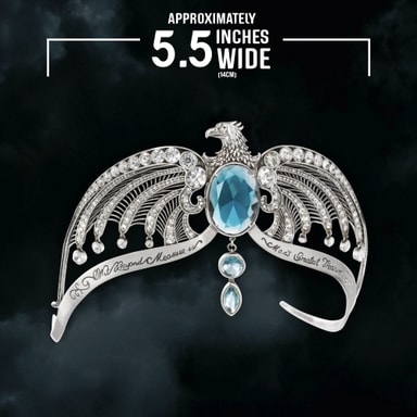 Noble Collection Harry Potter -Korpinkynsi-diadeemi sisältää kimaltelevat kristallit ja tuvan tunnuslauseen. Lintuja muistuttava muotoilu vangitsee elokuvan rekvisiitan yksityiskohdat ja tulee keräilijän laatikossa.