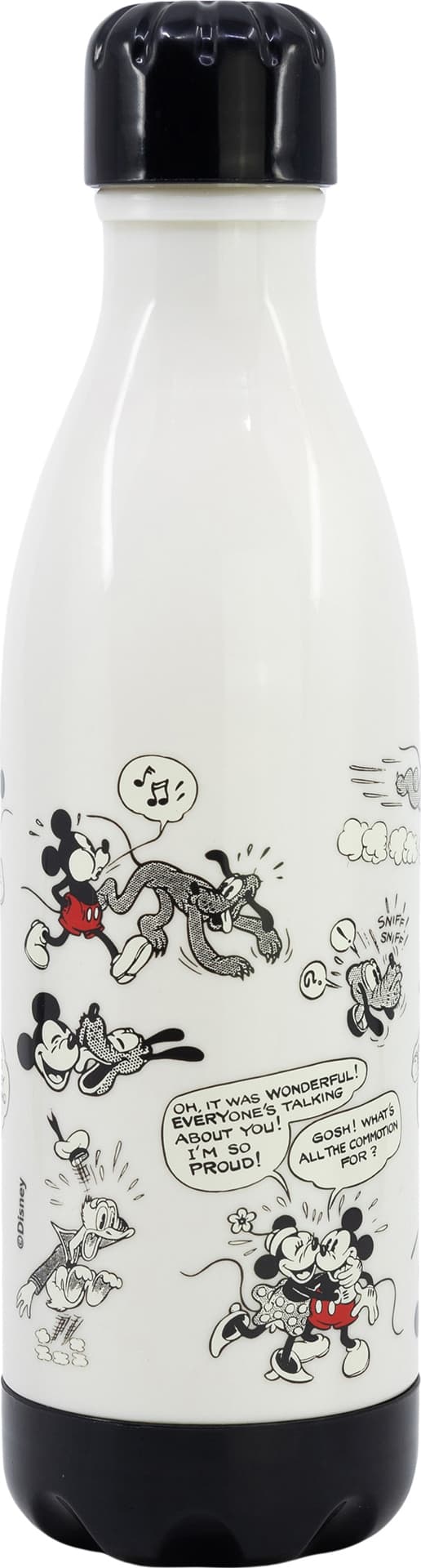 Tämän Stor Mickey Mouse -vesipullon avulla voit kuljettaa juomasi tyylikkäästi kaikkialle. Tässä vuotosuojatussa muovipullossa on metallinen kierrekorkki. Pullon painatuksessa on Mikki Hiiri vintage-sarjakuvamuodossa.Tutustu ominaisuuksiin