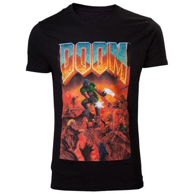 Musta t-paita Doom classic painatuksella. 100% puuvillaa, koko XL (eurooppalainen koko 54).