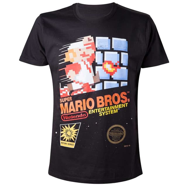 Musta T-paita Nintendo Entertainment System - Super Mario Bros -teemalla. 100% puuvillaa, koko S, vastaa eurooppalaista kokoa 48.Tutustu ominaisuuksiin