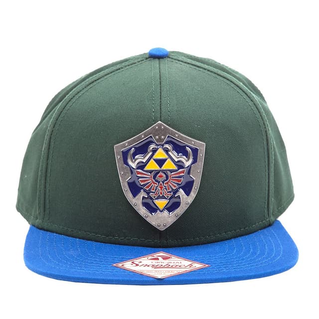 Vihreä/sininen lippalakki Zeldan metallisella hylian-kilvellä. 100% puuvillaa, säädettävä, universaali koko.Tutustu ominaisuuksiin