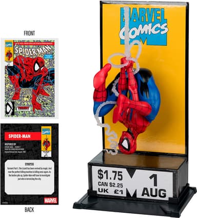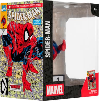 McFarlane Marvel Collection -toimintafiguuri on 1:10-mittakaavainen Spider-Man-keräilyesine, jonka mukana tulee taidekortti, jossa on hahmon taideteoksia ja sarjakuvan synopsis. Se on saanut inspiraationsa Spider-Man #1 -sarjakuvan kulmalaatikosta.Tutustu ominaisuuksiin