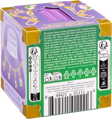 Noble Collection Wicked Charms BFF -riipussetti sisältää neljä emaloitua metallista riipusta, jotka juhlistavat Elphaban ja Glindan ystävyyttä. Mukana on kultasävyinen ketju, ja se on pakattu keräilyteemaiseen arkkulaatikkoon.Tutustu ominaisuuksiin