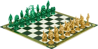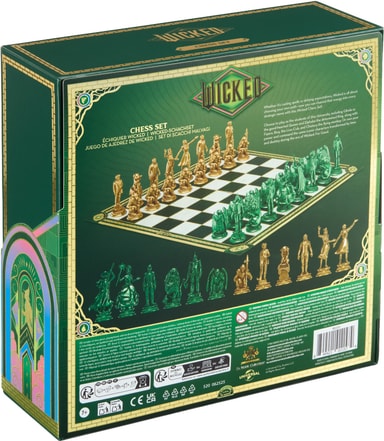 Noble Collection Wicked Shiz University vs. Emerald City -shakkisetti sisältää erittäin yksityiskohtaisia, käsinmaalattuja hartsisia shakkinappuloita, jotka esittävät hahmoja kuten Elphaba ja Glinda, kaikki keräilylaatikossa.Tutustu ominaisuuksiin