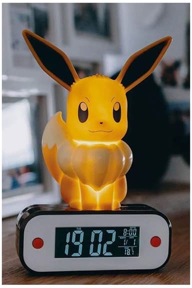 Herää seikkailumielisenä Pokemon Eevee -herätyskellolla. Laitteen muotoilu perustuu Pokemon sarjan rakastettuun Eevee-hahmoon, ja voitte aloittaa päivän yhdessä LED-valon valaistuksella.Tutustu ominaisuuksiin