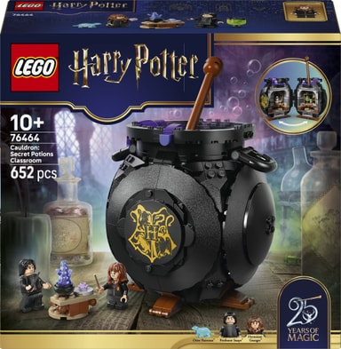 Anna lahjaksi lumoava LEGO® Harry Potter™ rakennussetti (76464), joka sopii koristeeksi ja leikkeihin. Noidankattilan sisällä on meneillään taikajuomien oppitunti. Kun kattilaa "sekoitetaan", sen sisältä paljastuu yksityiskohtainen luokkahuone, jossa on irrotettavia pöytiä, taikajuomapulloja ja LEGO palikka-aineksia eri juomia varten. Koe Tylypahkan taikajuomien oppitunti professori Kalkaroksen ja Hermione Grangerin™ minihahmojen seurassa. Mukana on myös Hermionen saukko-suojelius, joka on yksi LEGO Harry Potter valikoiman 25-vuotisen taipaleen kunniaksi julkaistavista suojeliuksista (kaikki setit myydään erikseen), sekä yksi neljästätoista keräilykohteeksi sopivasta Tylypahkan muotokuvasta