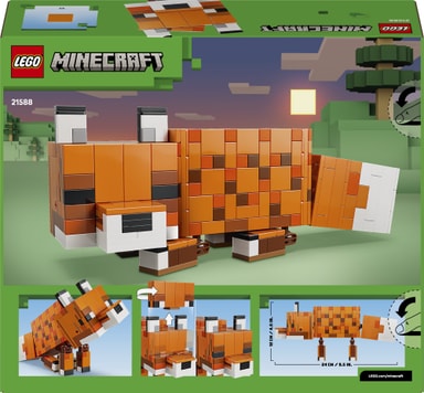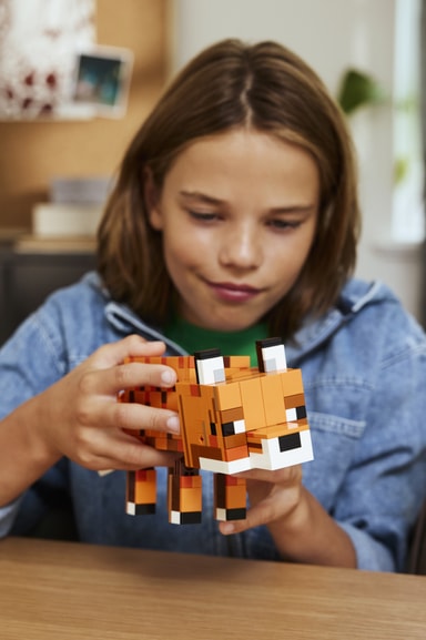 Lapsille tarkoitetusta rakennussetistä syntyy vaikuttavan kokoinen ja realistinen kettu, joten se on täydellinen lahja Minecraft-pelaajille ja videopeliaiheisista sisustusesineistä pitäville rakentelijoille. Hahmon jalat, kaulan ja pään voi asetella eri asentoihin, ja ketun silmät saa auki tai kiinni. Taivuteltavan hahmon voi siis laittaa niin seisomaan valveilla, istumaan pää kallellaan tai nukkumaan makuuasennossa. LEGO Builder sovellus selkeine digitaalisine ohjeineen antaa lapsille itsevarmuutta rakentamiseen. Sovelluksessa he voivat zoomata ja kiertää malleja 3D-näkymässä sekä seurata edistymistään. Setissä on 497 osaa.