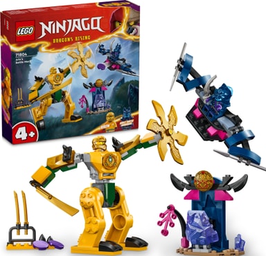 Arinin taistelurobotti (71804) ninjalelusetin parissa yli 4-vuotiaiden rakennustaidot karttuvat lasten auttaessa ninjasankareita pelastamaan lohikäärmeystävänsä. Roolileikkeihin sopiva toimintalelu sisältää näyttävän robottihahmon, joka innostaa leikkimään NINJAGO® Lohikäärmeiden nousu ‑TV-sarjan 2. kaudelta tuttuja jännittäviä seikkailuja.