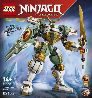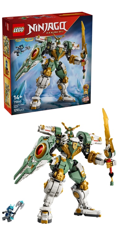 Näyttävän ja yksityiskohtaisen robottilelun parissa 14 vuotta täyttäneet ninjafanit voivat juhlistaa LEGO® NINJAGO® televisiosarjan 15-vuotista historiaa. LEGO® NINJAGO® Lloydin titaanirobotti – 15-vuotisjuhlamalli (71860) ‑setistä rakentuva toimintahahmo on uudistettu versio suositusta alkuperäisestä Lloydin titaanirobotti ‑mallista (70676).