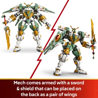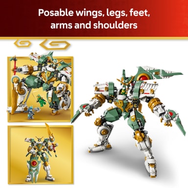 • TAIVUTELTAVA HAHMO – Robottilelu on päivitetty versio Lloydin titaanirobotista (70676), ja hahmon siivet, jalat, jalkaterät, kädet ja hartiat voi asetella eri asentoihin