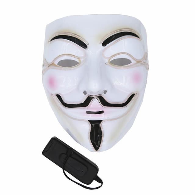 Erittäin pelottava LEDillä: V-muotoinen Vendetta-naamio, LED-valaistus, joka antaa jännittävän vaikutuksen pimeässä.