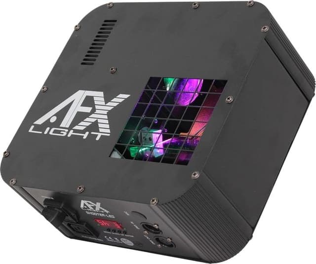 The afx shooter is a high-energy hybrid 20w led high speedscanner / beam effect. Its precision steeper motors and dual mirrors create pure lighting excitement with beam, cones and wave style effects that cover a large area. there are 29 built-in patterns, 10 colors and 6 show modes that allow users a lot of creativity to produce stimulating lightshows. the shooter led has a 3 operational modes (sound active, show mode or dmx), 2 dmx channel modes (10 channels), a 4-button dmx control menu and features a pattern zoom and rotation effect. 10 / 13 dmx channels. 8 colors + white + color combinations. dmx, music controlled and show mode. 29 macro patterns with zoom. laser simulation. dimmer 0-100%