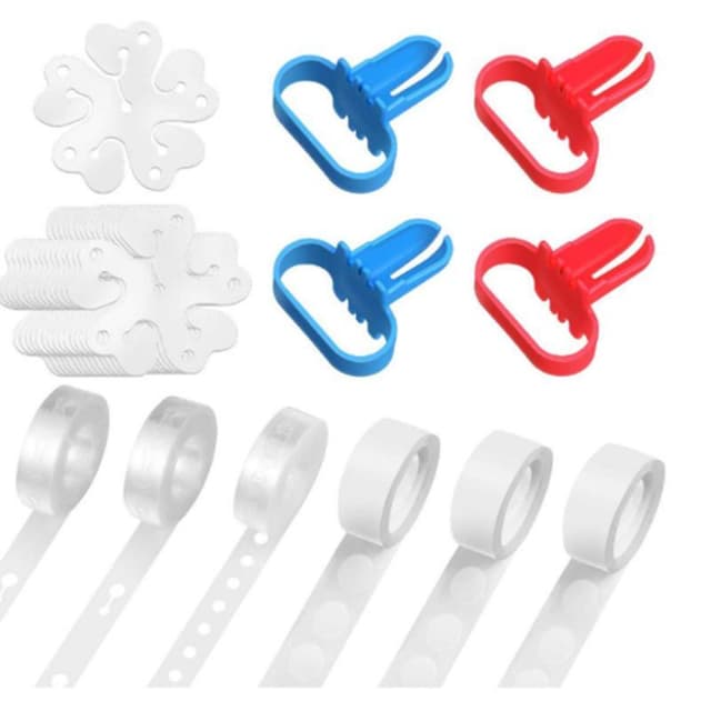 Täydellinen ilmapallotarvikesarja ilmapallojen korjaamiseen juhliin! Sisältää ilmapallokehyksiä, ilmapallosideaineita, teippipisteitä ja klipsiä. Auttaa rakentamaan helposti kauniin ilmapalloseppeleen.