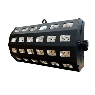 8-kanavaisella DMX-ohjauksella valaisin voi luoda monia valotehosteita, kuten stroboskoopin, himmennyksen ja ääniaktivoidun ohjauksen. LED-rivejä voidaan hallita yksilöllisesti monimutkaisempien ja vaikuttavampien valoshow’iden saavuttamiseksi. Paneeliin kuuluu myös säädettävä kiinnitysteline, joka mahdollistaa valon helpon asennuksen haluttuun kulmaan.