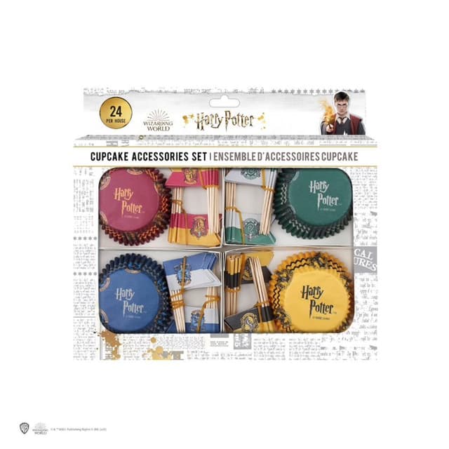 Paketti sisältää Harry Potter -teemaiset kuppikakkupohjat ja koristeliput Tylypahkan neljän eri tuvan mukaan. Jokaiselle tuvalle on 24 kuppikakkupohjaa ja 24 eri koristelippua.