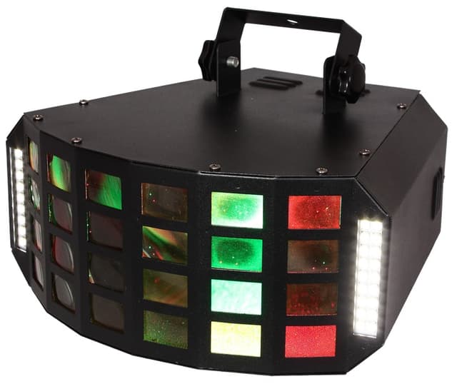 2-in-1 light effect - creates dual-beam colored beams due to built-in strobe. Can be controlled auto mode, DMX, master slave and audio-enabled operation. Ordinary lighting effect and strobe can be controlled separately.