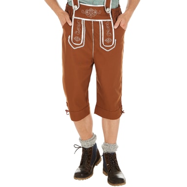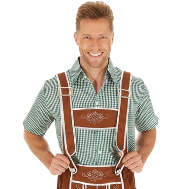 Tämä tyylikäs perinteinen itävaltalainen puku koostuu lederhose-tyylisistä shortseista. Näissä perinteisissä shortseissa on upeat kirjailut ja klassiset säädettävät H-muotoiset hihnat. Mukana tulee myös mukava yläosa. Materiaali: Pukukangas: Tämä eksklusiivinen perinteinen itävaltalaisvaikutteinen puku tekee sinusta todellisen Alppien silmänruokaa. Näillä perinteisillä shortseilla olet täydellisesti pukeutunut Oktoberfest-vierailulle tai matkalle itävaltalaiselle festivaalille. Olitpa sitten Münchenissä, Bad Cannstattissa, perinteisillä kyläjuhlilla tai naamiaisjuhlissa, loistat tässä perinteisessä baijerilaisessa lederhosen-puvussa. Tässä perinteisessä itävaltalaisessa puvussa erotut varmasti kaikissa saksalaisissa tai Oktoberfest-juhlissa. Kippis! Vinkki: hanki itsellesi pari perinteisiä polvisukkia ja haluamasi kengät, niin olet valmis juhlimaan! Tämä perinteinen puku on loistava valinta kaikille miehille, jotka haluavat pukeutua perinteiseen saksalaiseen tai itävaltalaiseen pukuun. Ja koska nämä perinteiset asut sopivat niin hyvin naamiaistapahtumaan, löydät verkkokaupastamme runsaasti dirndlejä ja lederhoseja.