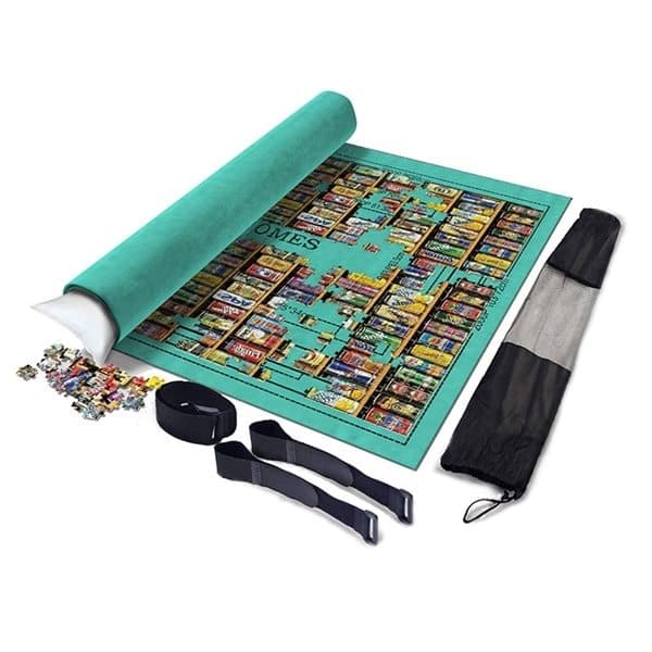 Tämän kätevän palapelimaton avulla voit pakata ja säilyttää palapeliäsi, vaikka se ei olisi vielä valmis. Kokoat tavalliseen tapaan palapelimatto alustana ja kun haluat pitää tauon, pyörität vain maton puhallettavan rullan ympärille ja laitat sen sivuun. Kun haluat kokoa palapeliä uudelleen, vieritä matto palapelin kanssa jatkaaksesi siitä, mihin jäit. - Täydellinen, kun et jaksa koota koko palapeli äkerralla - Näppärä säilyttää - Luistamaton pinta, joka pitää palapelin palat paikoillaan Materiaali: Huopakangas Kapasiteetti: 2000 palaa Mitat: 80 x 120 cm Väri: Vihreä Lisävarusteet: Puhallettava rulla, hihnat, säilytyspussi Huomaa, että palapeli ei sisälly toimitukseen.