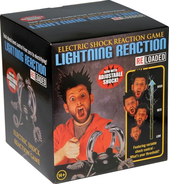 Play Reaction Reloaded Lightning -peli on todellinen shokki. Se tarjoaa hupia jopa neljälle pelaajalle testaamalla refleksejä. Kun vihreä valo syttyy, sinun pitää painaa ohjaintasi nopeammin kuin muut pelaajat. Voittaja saa juhlia ylpeänä, ja häviäjät saavat harmittoman sähköiskun käteensä. Peli vaatii kolme AAA-paristoa, ja se on suositeltu 14-vuotiaille tai sitä vanhemmille pelaajille.