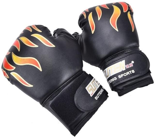 Boxningshandskar för vuxna, svarta med eldsflammor