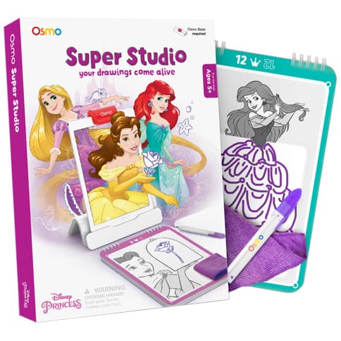 Osmo Super Studio Disney Princess yhdistää fyysisen Super Sketchpad -piirustuslehtiön ja sovelluksen tarjoamat animaatiot. Lapsesi pääsee käyttämään luovuuttaan tuttujen Disney-hahmojen kanssa ja oppimaan piirustustaitoja.