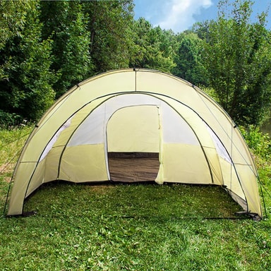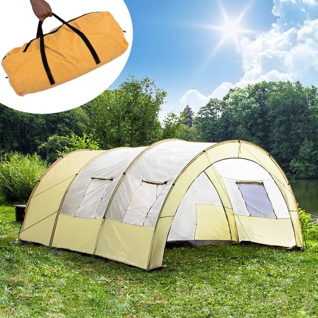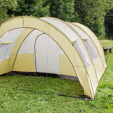 Tunneliteltta vedenpitävä jopa 6 henkilölle. Jokaisen retkeilyn harrastajan unelmien täyttymys! Suuri, mukava tunneliteltta sopii erinomaisesti perheille tai pienille ryhmille. Katettu katos kutsuu rentoutumaan varjossa ja tarjoaa myös säilytystilaa retkeilyvälineille. Teltta voidaan pystyttää tai purkaa muutamassa minuutissa ja se on silti erittäin vakaa. Lyhyesti sanottuna: täydellinen matkakumppani ulkoiluviikonloppuun!