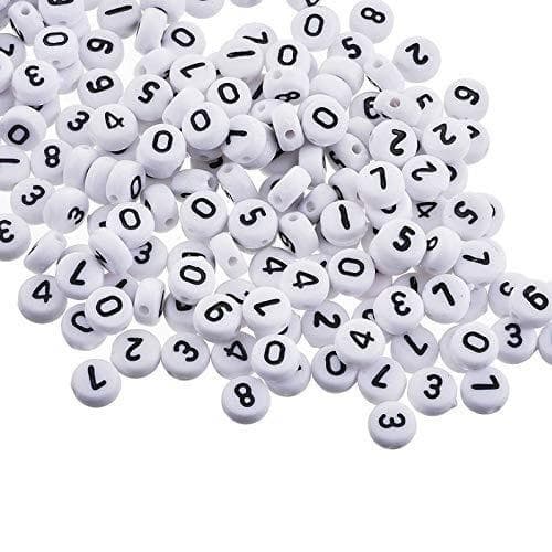 200 valkoista helmeä, joissa on sekoitettuja numeroita.