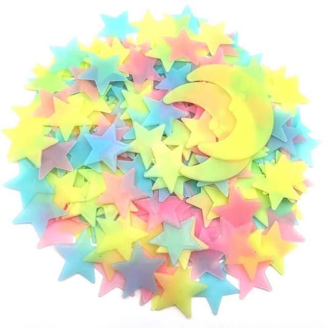 Glow in the Dark -seinäkoriste: 100 tarraa, jotka voit kiinnittää seiniin, kattoon tai esineisiin. Ne hohtavat pimeässä ja muuttavat katon loistavaksi tähtitaivaan.