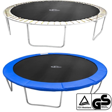 Kohokohdat • Kestävä urheiluväline • Pelinkestävä trampoliini • Vahvat teräsjouset • Vakaa teräsputkirunko • Vakavuus W-levyjen ansiosta • Vakavuuden takaavat W-... muotoisten jalkojen ansiosta • Vetoketjullinen sisäänkäynti • Korkea kireys • Turvaverkko • Pehmustetut verkkotolpat • Reunapeite • Sisäänkäyntitikkaat • Helppo koota • TÜV-testattu: GS-sertifiointinumero S 50390168 • Färg: musta/sininen