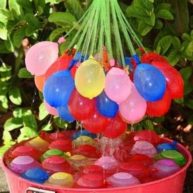 Miksi vaivautua täyttämään jokainen yksittäinen ilmapallo, kun on olemassa tällaisia helppoja ratkaisuja? Jokainen, joka on joskus leikkinyt vesipalloilla, tietää, että puolet leikkiajasta voi kulua ilmapallojen täyttämiseen. Mielestämme surullista! Aloita hauskanpito nopeammin täyttämällä sen sijaan useita kymmeniä ilmapalloja kerralla! Saat yhteensä 111 nopeasti täytettävää vesipalloa. Fiksua, helppoa ja edullista!Täydellinen kesän vesisotiin