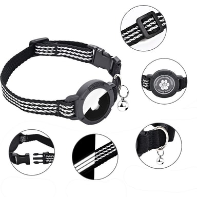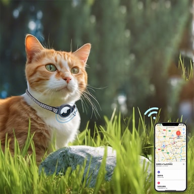 Airtag-pidikkeellä: Asettamalla Airtag-tunnisteen kissan kaulapantaan voit helpommin seurata kissaasi, kun GPS muodostaa yhteyden sinun tai jonkun toisen lähellä olevan iPhoneen.