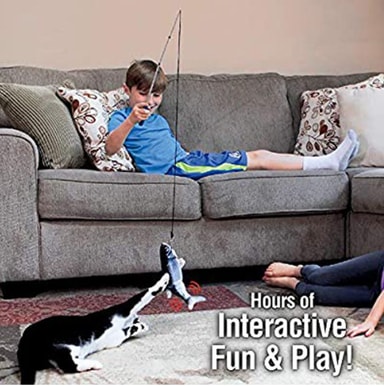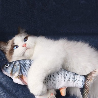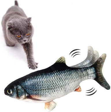 Interaktiv kattleksak: Perfekt när du inte är hemma eller inte har tid att leka! Leksaken har en inbyggd beröringssensor, så att fisken rör sig och sprattlar och på så sätt fångar kattens intresse och inspirerar till lek. Du använder den medföljande USB-kabeln för att ladda fisken.