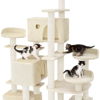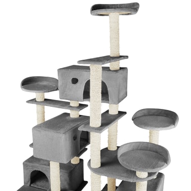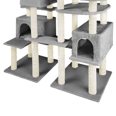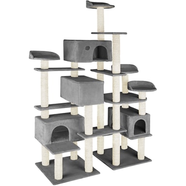 Seikkailijoita, kiipeilijöitä tai loikoilijoita: tämän Tectaken monipuolisen kissapuun avulla kissasi toiveet toteutuvat, olivatpa ne sitten mitä tahansa. Kissasi voi leikkiä ja tutkia useilla tasoilla, jotka on rakennettu optimaaliseksi toimintakeskukseksi. Lukuisat sisal-pilarit ovat ihanteellisia raapimiseen. Neljä tasoa ovat täydellisiä kissallesi rentoutumiseen ja oleskeluun, ja ylimmällä tasanteella on korkeutta yli 2 metriä, jolloin kissasi voi tarkastella valtakuntaansa ja tyydyttää luontaista uteliaisuuttaan. Neljä kissaluolaa tarjoavat kissallesi runsaasti paikkoja, joissa se voi halailla ja levätä turvallisesti ja mukavasti. Kissapuun koon ja laajuuden ansiosta se sopii erinomaisesti useammalle kissalle tai vain yhden erityisen erikoisen lemmikin hoitoon! Kaksi jalustaa antavat kissapuulle lisää vakautta - vaikka leikkiaika muuttuisi riehakkaaksi. Tarjoa kissoillesi tai kissanpennuillesi herkkua ja hanki niille tämä kissankuusi Tectakelta.