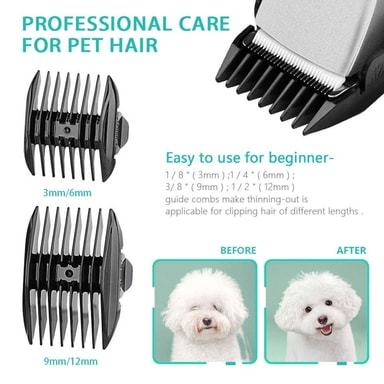 Huomaa: Jos koirallasi on pitkä ja paksu turkki, sinun on ensin leikattava se saksiparilla, muutoin trimmeri voi juuttua eikä toimi kunnolla.