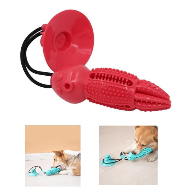 Vahva imukuppi: Tässä koiran lelussa on vahva imukuppi, joka on kiinnitetty lattiaan tai muuhun sileään pintaan ja jonka avulla koira voi vetää ja pureskella lelua kaiken aikaa ilman, että se vapautuu.