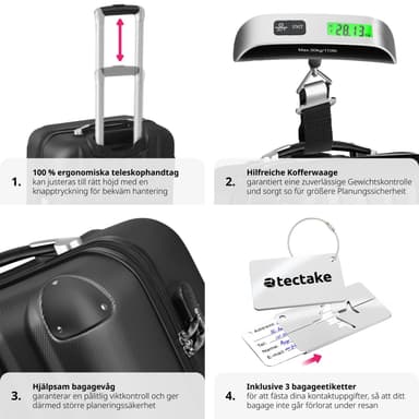 Tutustu tectaken Premium 3-osainen matkalaukkusarja Taliaan - jokaisen matkan ehdoton Must-Have, joka koostuu kolmesta tilavasta pyörälaukusta ja hyödyllisistä lisävarusteista.Kestävät, sisäkkäin pinottavat kovat kuoret, jotka on valmistettu iskunkes