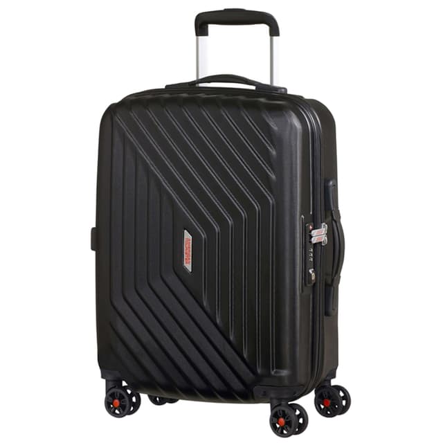 American Tourister 55 S Cabin Spinner -matkalaukun kompaktin koon ansiosta se voidaan ottaa useimpien lentoyhtiöiden koneiden matkustamoon. Pehmeät kaksoispyörät ja ulosvedettävä varrellinen kahva tekevät laukun liikuttamisesta helppoa. Vetoketju suljetaan TSA-lukolla, joka pitää laukun sisällön turvassa.