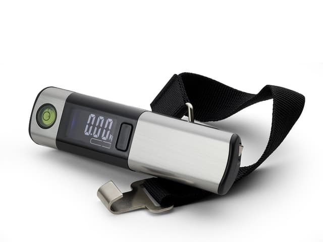 This digital luggage scale makes it easy to check if you're within weight restrictions when travelling. It can handle up to 50 kg and weighs your luggage in kilograms (kg), ounces (oz) and pounds (lb). The luggage scale has an overweight alarm that a