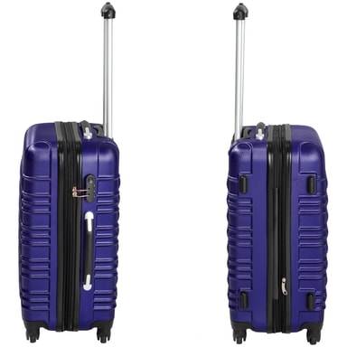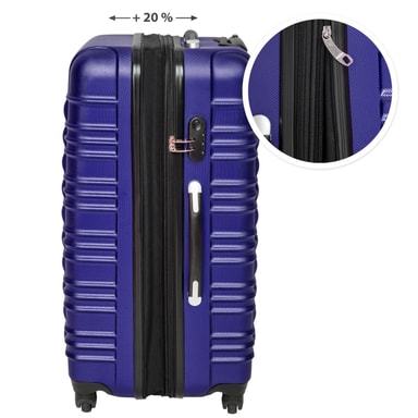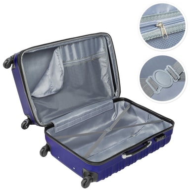 Kohokohdat • Moderni muotoilu • Kevyt ABS-muovinen kova kuori • Errotettava sisäpuoli • Kestävä kova kotelosarja eri kokoisina • Ristihihna ja sisäinen verkkopäällinen • Turvallinen yhdistelmälukko • Tavaratilan laajennus • Kahdella sivulla olevat kantokahvat • Korkeussäädettävä alumiininen teleskooppi kahva • 360° rullajärjestelmä erittäin hiljaisilla ja pehmeillä teloilla • Irrotettavat rullat • Färg: sininen