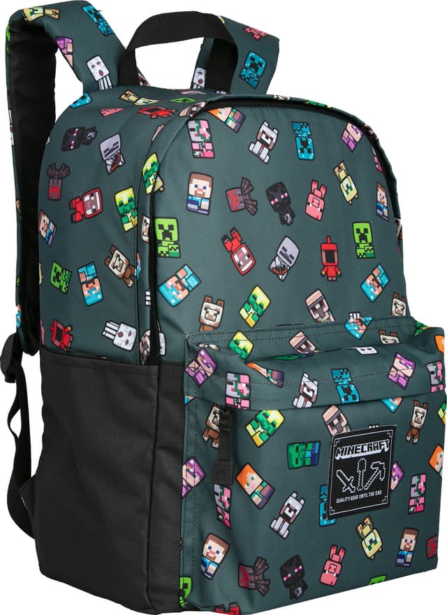 Carry your laptop and items of daily use inside this comfortable Minecraft-themed backpack with Bobble Mobs design. The backpack has reinforced bottom, padded back, padded laptop sleeve on the inside, extra zipped compartment and side pockets.Tutustu ominaisuuksiin