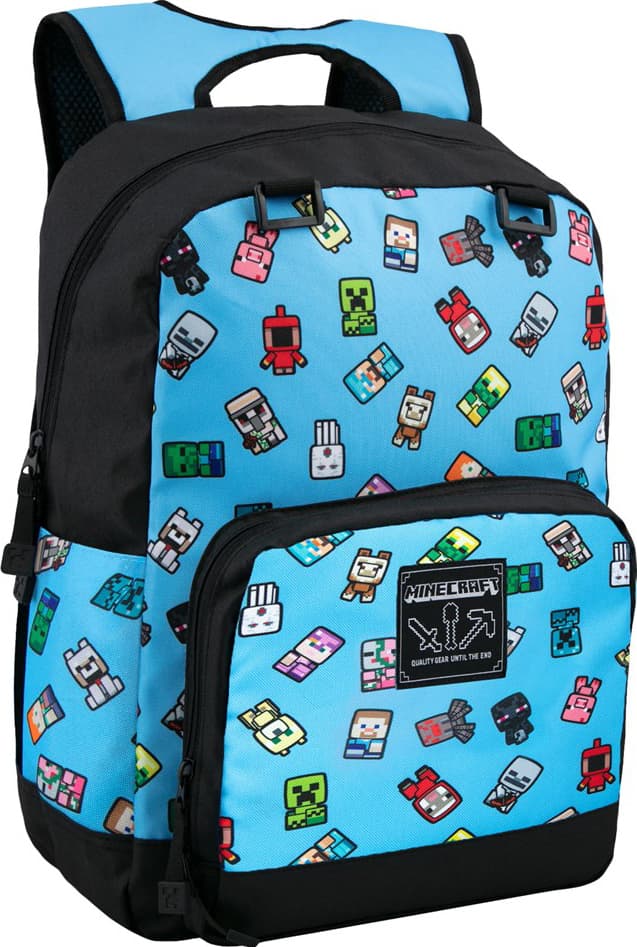 Carry your laptop and items of daily use inside this comfortable Minecraft-themed backpack with Bobble Mobs design. The backpack has reinforced bottom, padded back, padded laptop sleeve on the inside, extra zipped compartment and side pockets.Tutustu ominaisuuksiin