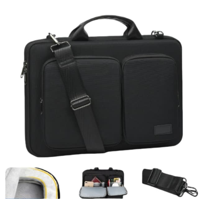 Mukava kannettavuus: Suunniteltu mukavaan kantamiseen, tässä läppärilaukussa on tukeva kahva ja irrotettava, säädettävä olkahihna. Pehmustettu olkahihna vähentää rasitusta hartioissa ja selässä, mikä helpottaa MacBookin kantamista pitkiä aikoja. Kevyt muotoilu varmistaa, että laukku ei lisää tarpeetonta painoa, jolloin voit liikkua vapaasti ja mukavasti. Halusitpa sitten kantaa sitä kädessä tai olkapäällä, tämä laukku tarjoaa monipuoliset kanto-ominaisuudet tarpeisiisi. Vankka rakenne varmistaa, että kahva ja hihna kestävät päivittäistä käyttöä.