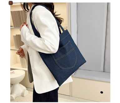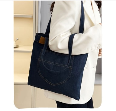 Monipuolinen ja käytännöllinen: Tämä denim-kangaskassi on täydellinen kumppani monenlaisiin tilaisuuksiin. Sen monipuolinen muotoilu tekee siitä sopivan työmatkoille, asioiden hoitamiseen kaupungilla tai rentouttavasta kävelystä nauttimiseen. Mukava olkahihna takaa mukavan kantokokemuksen, vaikka kassi olisi täynnä. Sen kevyt rakenne estää tarpeettoman rasituksen hartioille ja selälle, jolloin voit kantaa tavaroitasi helposti ja mukavasti koko päivän.
