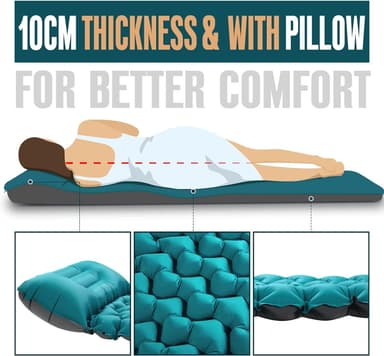 Ylivertainen mukavuus: Koe vertaansa vailla oleva mukavuus tällä puhallettavalla makuualustalla. Valmistettu ensiluokkaisesta 40D nailonista ja TPU:sta, tämä retkipatja mukautuu vartaloosi ja tarjoaa poikkeuksellista tukea ja pehmustusta. 8 cm:n paksuus varmistaa hyvän eristyksen kylmältä maalta ja takaa levolliset yöunet niin leirintä-, retkeily- kuin patikointiretkelläkin.